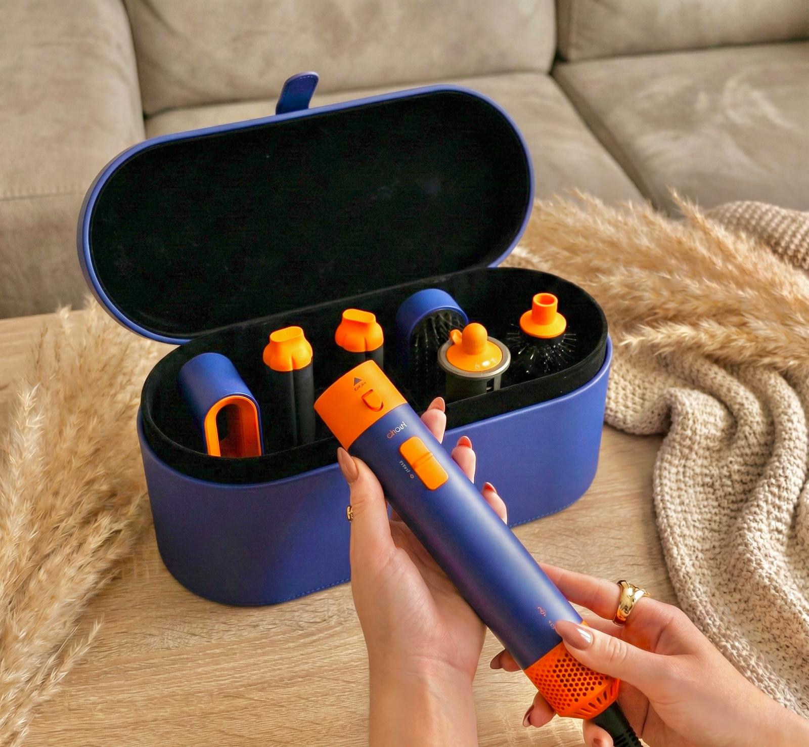 Incluye el cuerpo principal AirDrive™, boquilla de secado rápido, cepillo alisador Smooth Brush Pro™, cepillo de volumen AirBrush™, barril rizador AirCurl de 30 mm, barril rizador AirCurl de 40 mm y cepillo redondo StyleRoller Pro™.